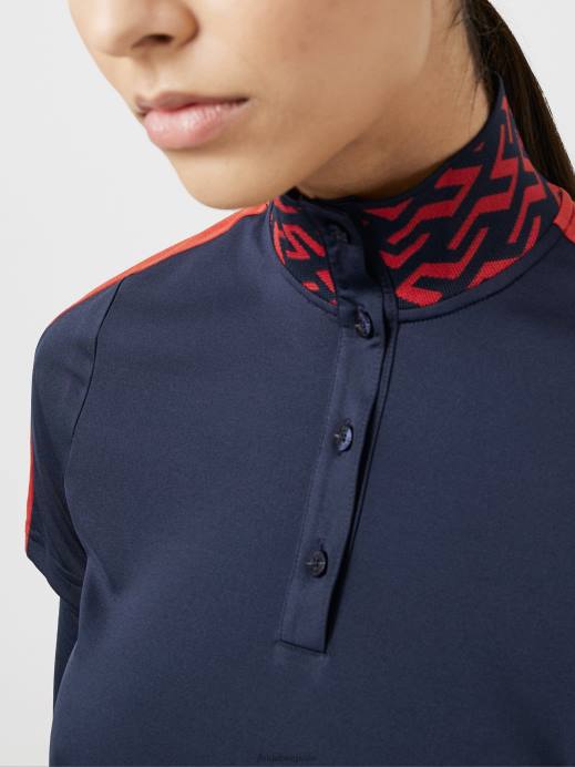 Women J.Lindeberg Navy Pip Golf Polo Clothing 8R622636