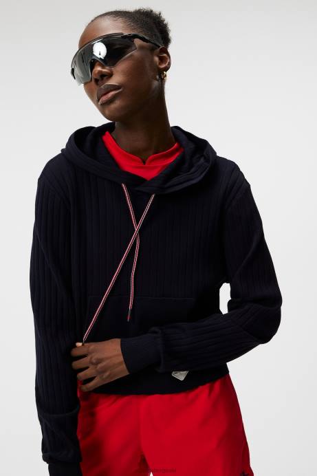 Women J.Lindeberg Navy Zania Knitted Hoodie Clothing 8R621833