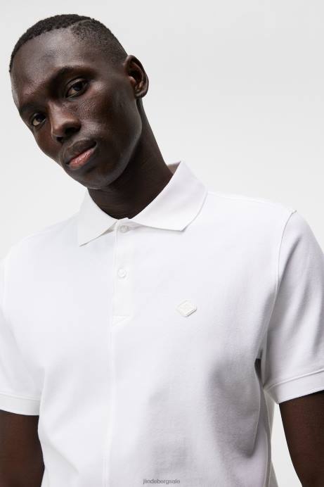 Men J.Lindeberg White Rubi Slim Polo Clothing 8R62956
